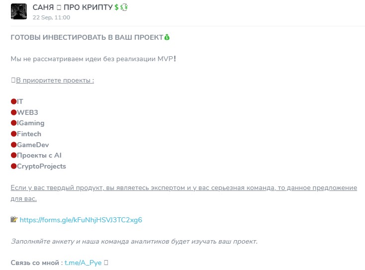 Саня Про Крипту — отзывы об инвесторе A Pye и его проекте в Телеграм, скам или возможность заработать