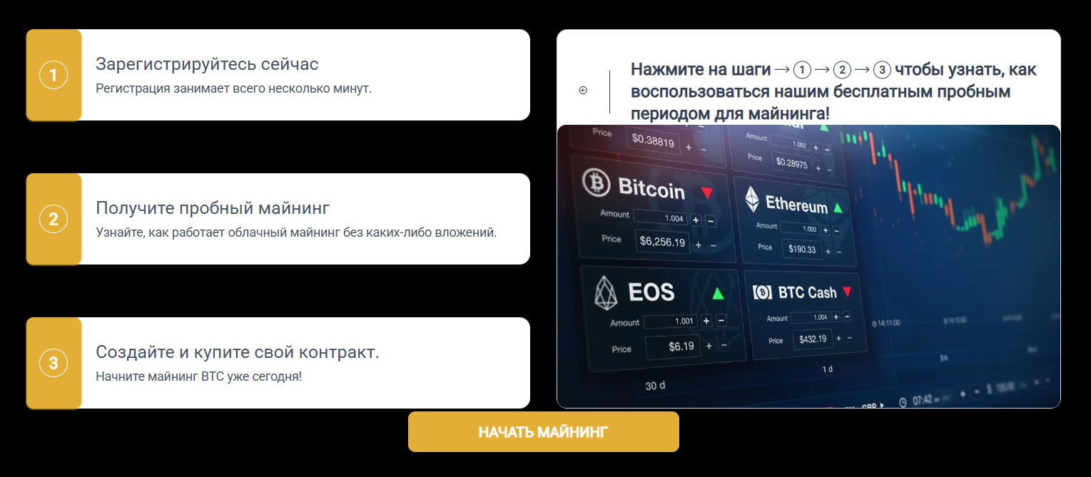Создатели даже зовут свою платформу ведущей в мире для облачного майнинга, хотя не приводят тому никаких доказательств.