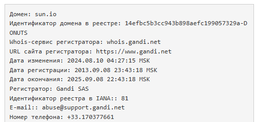 Домен сайта Sun Io зарегистрирован 8 сентября 2013 года. Но еще в 2019 году он стоял на продаже. Только в конце 2020 года загрузили первую простенькую оболочку сайта проекта с котировками крипты. Поэтому шесть лет проект приписал себе без имеющихся на то оснований. Ресурс поддерживает английский, китайский и японский языки.