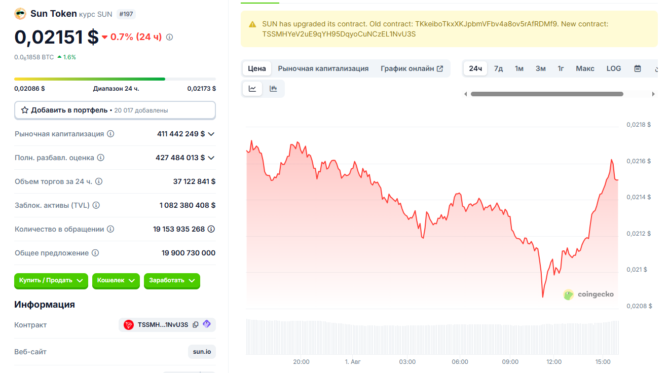 Сводная информация о Sun Token