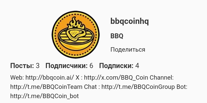 Создателям также принадлежит сайт Bbqcoin ai и аккаунт с таким же именем в Telegram, но bot здесь тот же самый. О команде проекта информации нет, а никто из известных людей не высказывается об игре.