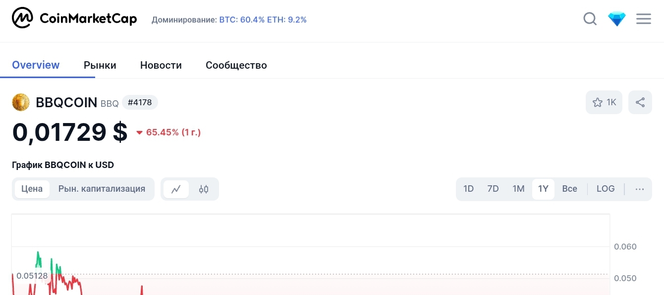 Листинг токена Bbq Coin после майнинга коина уже состоялся, но курс за все время присутствия на рынке снизился в 5 раз. В принципе, так происходит со многими подобными проектами, поэтому говорить о каких-то перспективах сложно.