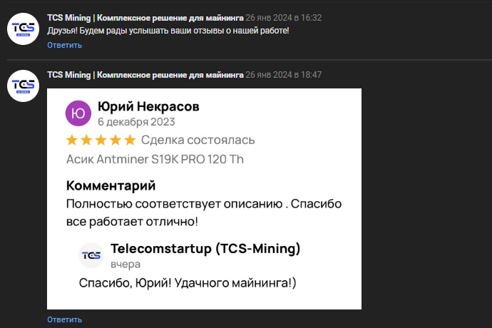 Отзывы о ТЦС Майнинг