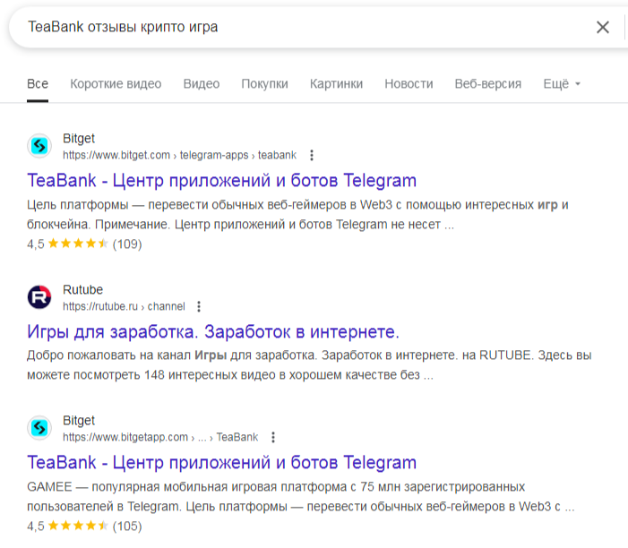 Мы выяснили, что возраст проекта – всего 4 месяца. Но за этот период он не смог заработать успешную репутацию. Об этом говорит отсутствие отзывов и какого-либо упоминания о крипто-игре TeaBank @ tea bank bot в сети. Причем нет ни довольных, ни отрицательных слов.