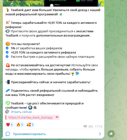 Обзор телеграмм-бота Tea Bank Bot, анализ деятельности игры teabank io отзывы о проекте «Теа Банк»