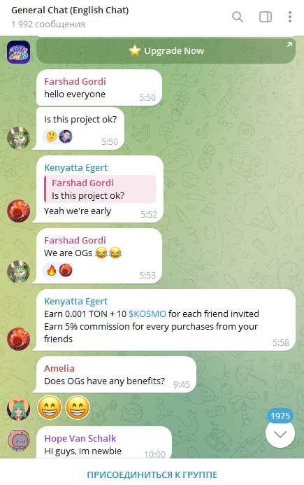 На независимых сайтах и форумах отзывов о Ton kosmo telegram нет. Бот появился недавно, возможно через определенное время они появятся. У проекта есть чат в ТГ. В нем пользователи общаются, но не дают оценку перспективам этого бота.