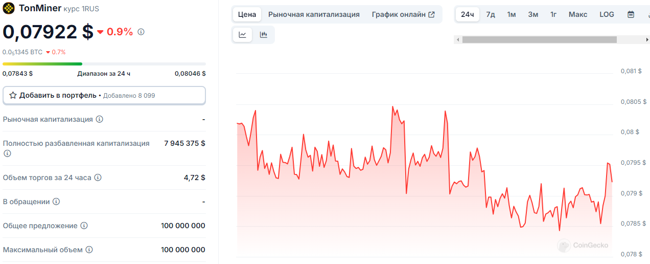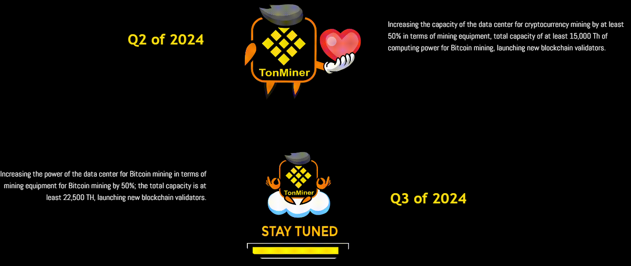 TonMiner успешно запущен в конце 2023 года, регистрацией аккаунтов в социальных сетях, заложении принципов сообщества и запуска 1rus токена. Постепенно развиваясь, платформа напампила монету до 0.24 долларов за штуку и 36 тысячного объема за сутки, пик пришелся на апрель 2024 года.