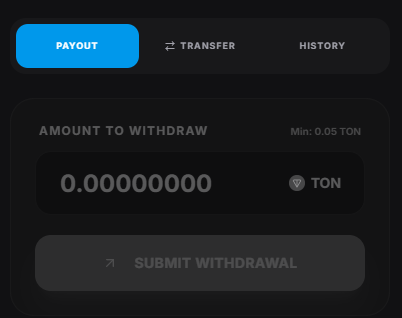 Об опасности вложений мы говорили, поскольку процесс вывода средств тут абсолютно непрозрачен. В соответствующем разделе кнопка даже неактивна. Возможно, ей получится воспользоваться при достижении минимального баланса 0,05 TON, но даже это неизвестно наверняка.