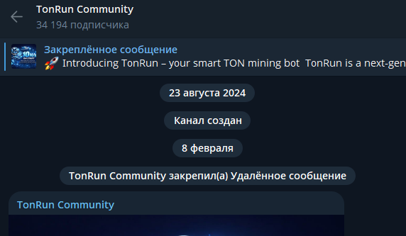 Проверка официального сообщества ТонРан показывает, что проектом занимаются только около месяца, хотя группа была создана в 2024-м году. Возможно, ее даже выкупили текущие владельцы с аудиторией в виде 34 тыс. человек, чтобы 150+ тыс. юзеров в боте выглядели более правдоподобно.