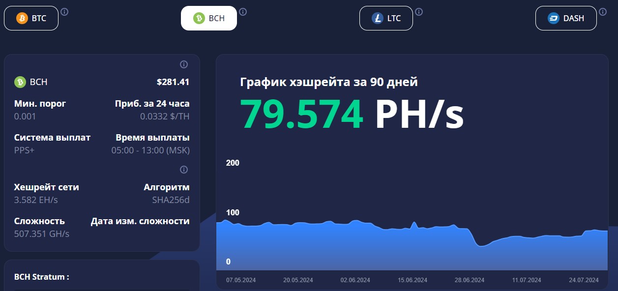 Поддерживается работа с криптовалютами Bitcoin, Litecoin, Bitcoin Cash, Dogecoin и Dash. Неизвестно, в какой стране находится офис Trustpool, компания-владелец пула не называется, документов на сайте нет.