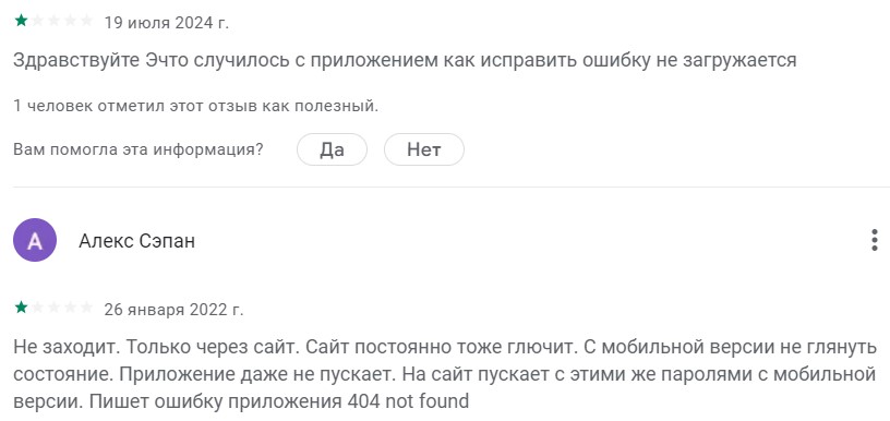 Регулярно жалуются на нестабильную работу сайта и мобильного приложения.