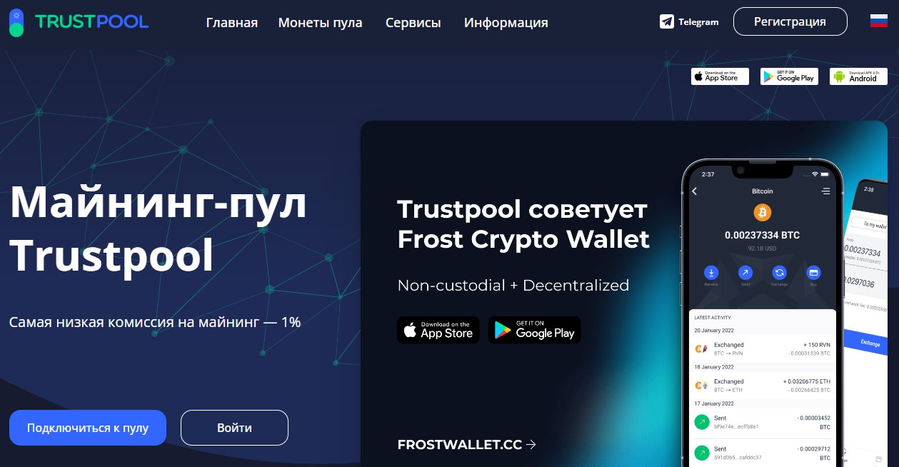 За майнинг в Трастпул придется отдавать 1% комиссии со всего заработанного. Владельцы пула утверждают, что это самая низкая комиссия на рынке. Клиентам обещают выплаты каждый день, а отслеживать заработки и хешрейт можно через приложение для смартфонов.