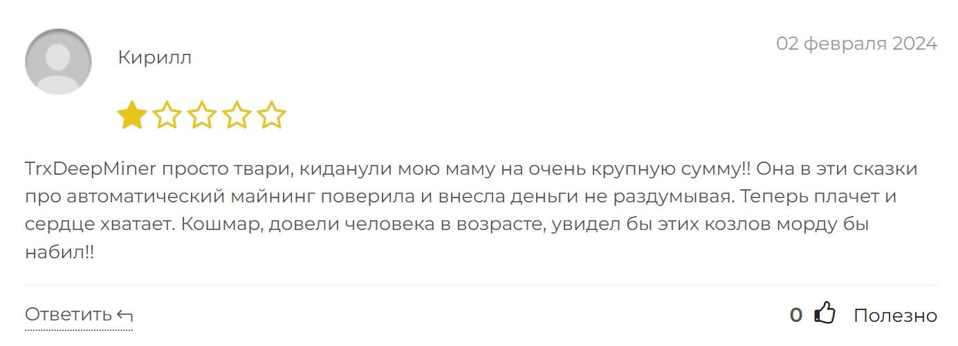 Наш вердикт – сотрудничать с TrxDeepMiner не стоит.