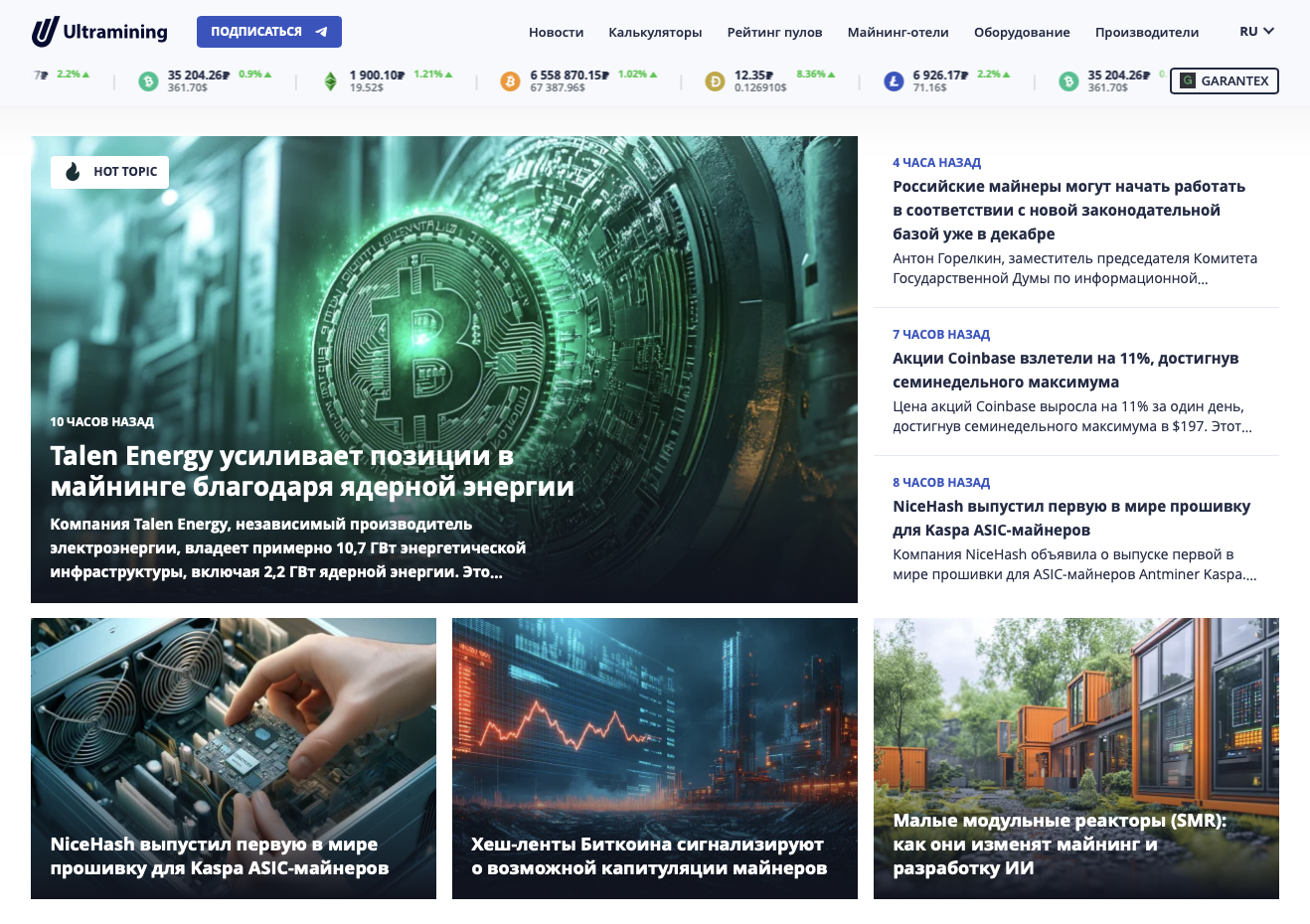 Случайно забредя на главную страницу сайта UltraMining, можно подумать, что это ресурс исключительно о новостях майнинга. Однако данный ресурс не так прост.