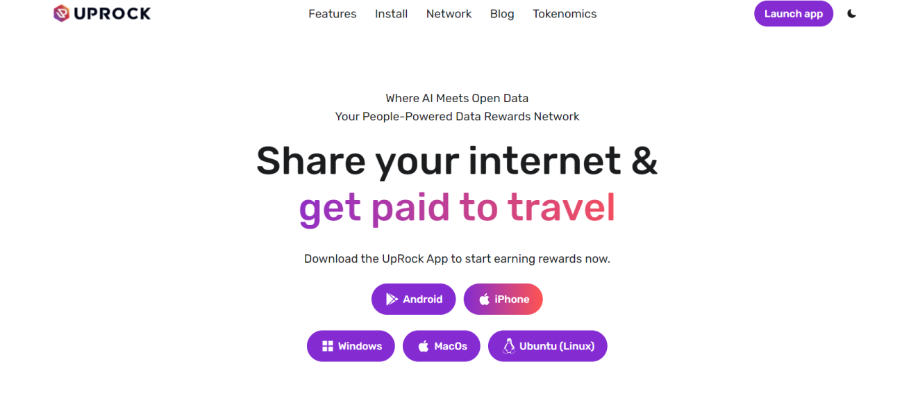 Изучить сведения о проекте можно благодаря официальному веб-ресурсу. Интерфейс сайта оформлен на английском языке. Сменить его на другие не получится. Создатели преподносят Uprock com как лучшее приложение для получения токенов. Пользователям достаточно подключить сеть и, как уверяют руководители, затем можно получать пассивный доход. Как написано на сайте, в основе проекта используется новый подход к потребностям ИИ. Он разработан с KAL (сочетанием веб-сканирования маршрутизации и способов извлечения LLM). С компанией сотрудничают 600 тыс.+ пользователей.