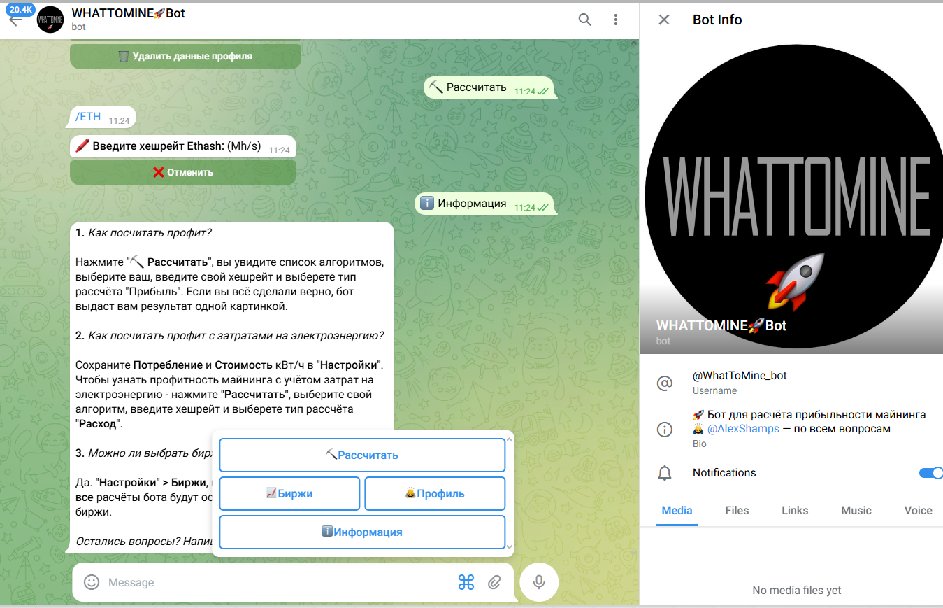 Whattominebot — это Телеграмм-бот, предназначенный для расчета дохода майнинга. С помощью проекта пользователи могут узнавать о биржевых курсах, и, по словам создателя, при необходимости можно получить поддержку. Клиентам обещают надежность, но в статье мы расскажем о боте правду.