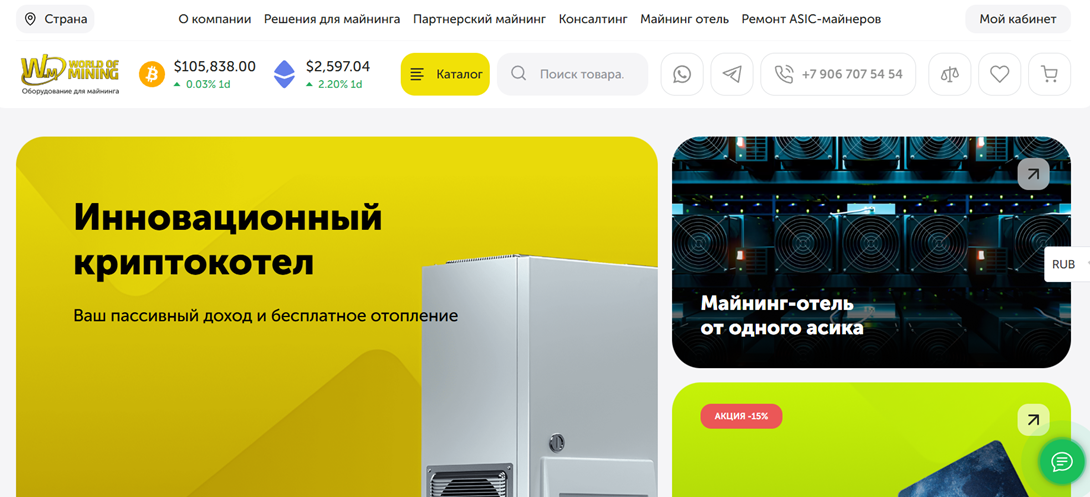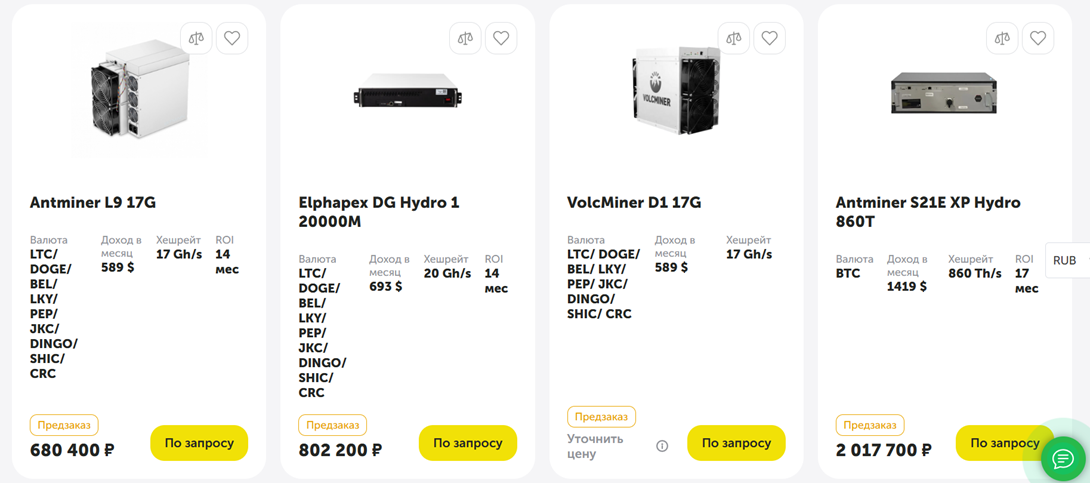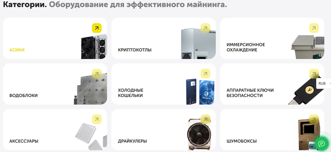 World of Mining Store предлагает клиентам такие виды продукции: