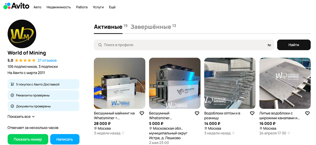Репутация на «Авито» положительная. Есть более 100 подписчиков, 13 завершенных доставок и 27 положительных отзывов. В продаже присутствуют товары, которые продаются и на официальном сайте