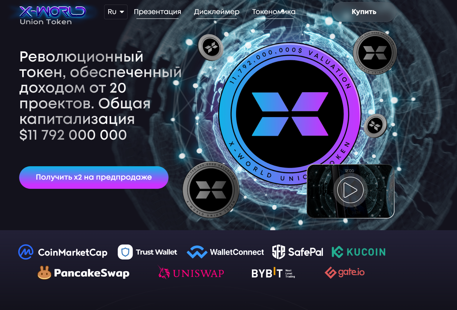 Создатели заявляют, что компания X World Union занимается обеспечением бесплатного интернета и связи, гарантирует большой выбор инструментов и дополнительные возможности. Проекты, которые входят в экосистему, повышают капитализацию и уровень доходности.