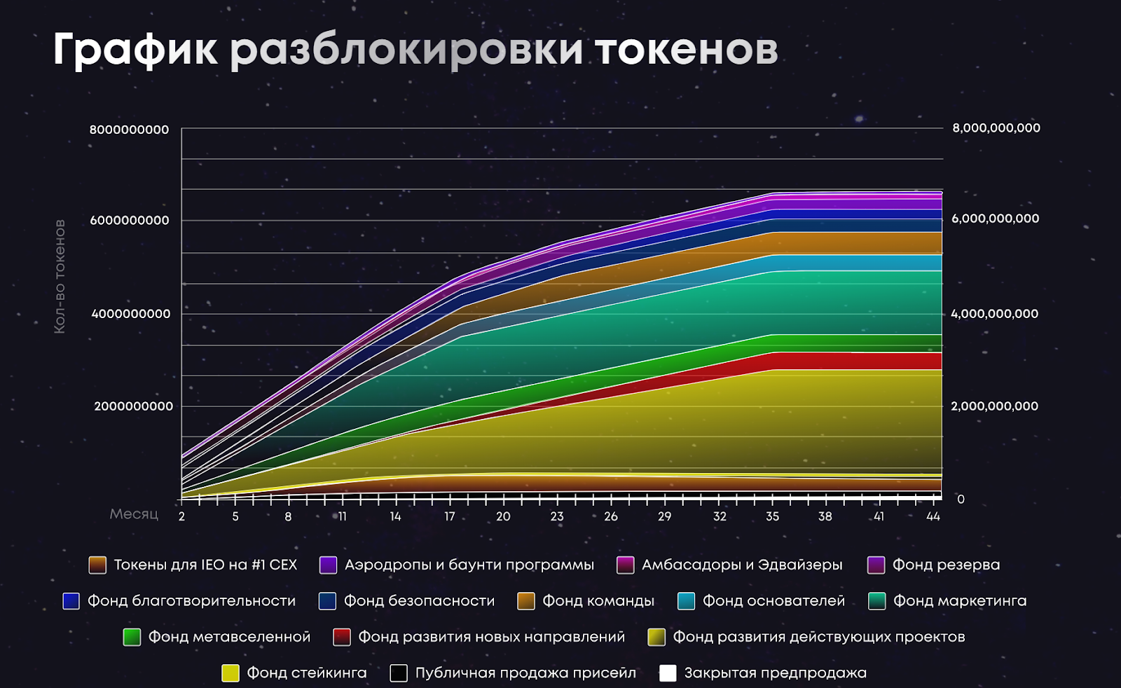 Разблокировка токенов также будет производиться поэтапно с учетом схемы ниже.
