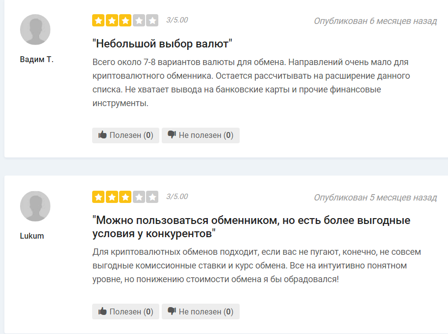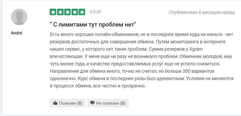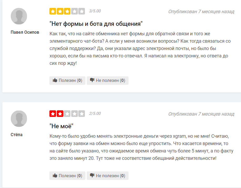 Также есть ряд средних отзывов, в которых их авторы недовольны маленьким выбором. Они отмечают, что обменником Xgram пользоваться можно, но есть конкуренты, у которых более выгодные условия. Сейчас такие отзывы не совсем актуальны, так как цена адекватная, а выбор огромный.