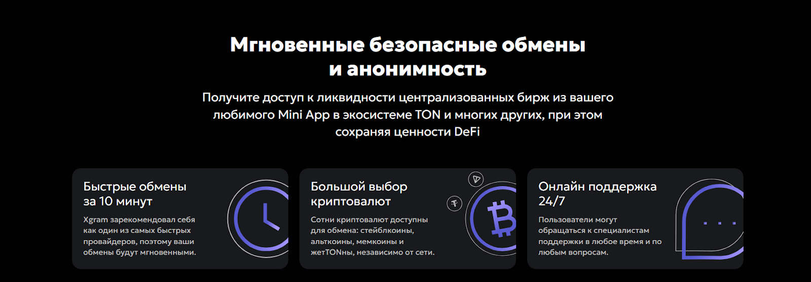 - у Xgram большие перспективы. Это связано с тем, что обменник один из первых сделал свое мини-приложение внутри Telegram, что облегчает условия обмена для многих пользователей.