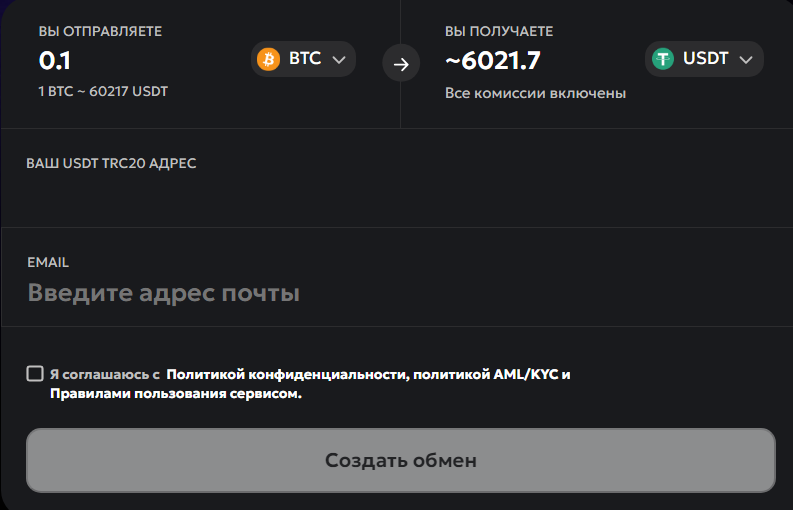 - наличие AML и KYC политики гарантирует безопасность при обмене и предотвращает мошеннические действия на сервисе;