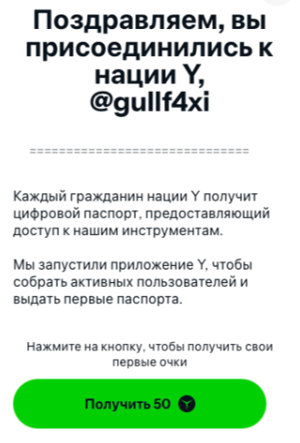 Игрокам в игре нужно делать ответы на вопросы в Y nation bot и получать за это до 2000 очков. Также в игре есть пассивный майнинг, где дают до 5 очков в час.