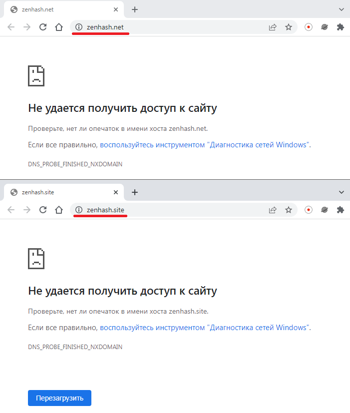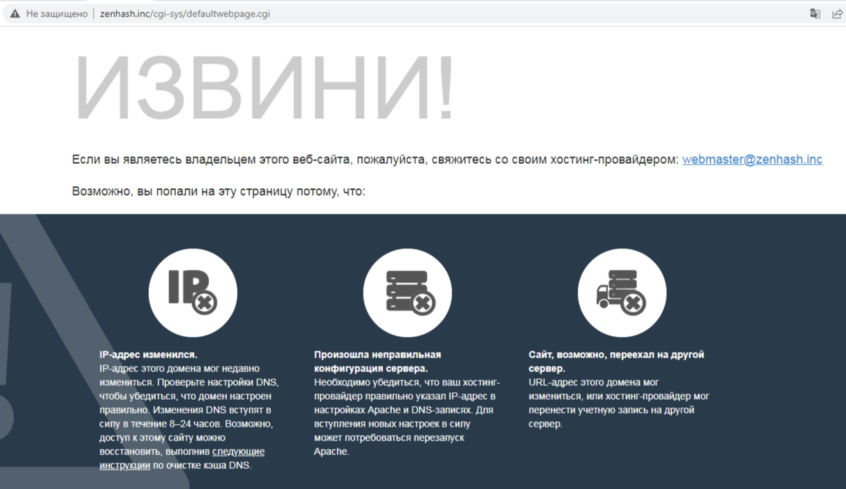 Скорее всего, причина связана с третьим вариантом, так как мы обнаружили, что у компании есть еще два ресурса: Zenhash Net и Zenhash Site. Сейчас они тоже не открываются, но тут уже нет никаких предупреждений. Впн тоже не помогает открыть источники, значит работа проекта прекращена на территории всего мира.