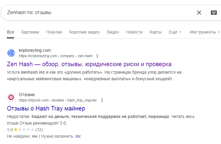Проект был создан около 5 месяцев назад, но когда он прекратил действовать и сколько фактически проработал – непонятно. Ни один из сайтов Zenhash Inc, Zenhash Net и Zenhash Site сейчас не открывается. За этот небольшой период времени ресурс не успел заработать популярность, существенные упоминания и отзывы от клиентов в интернете.