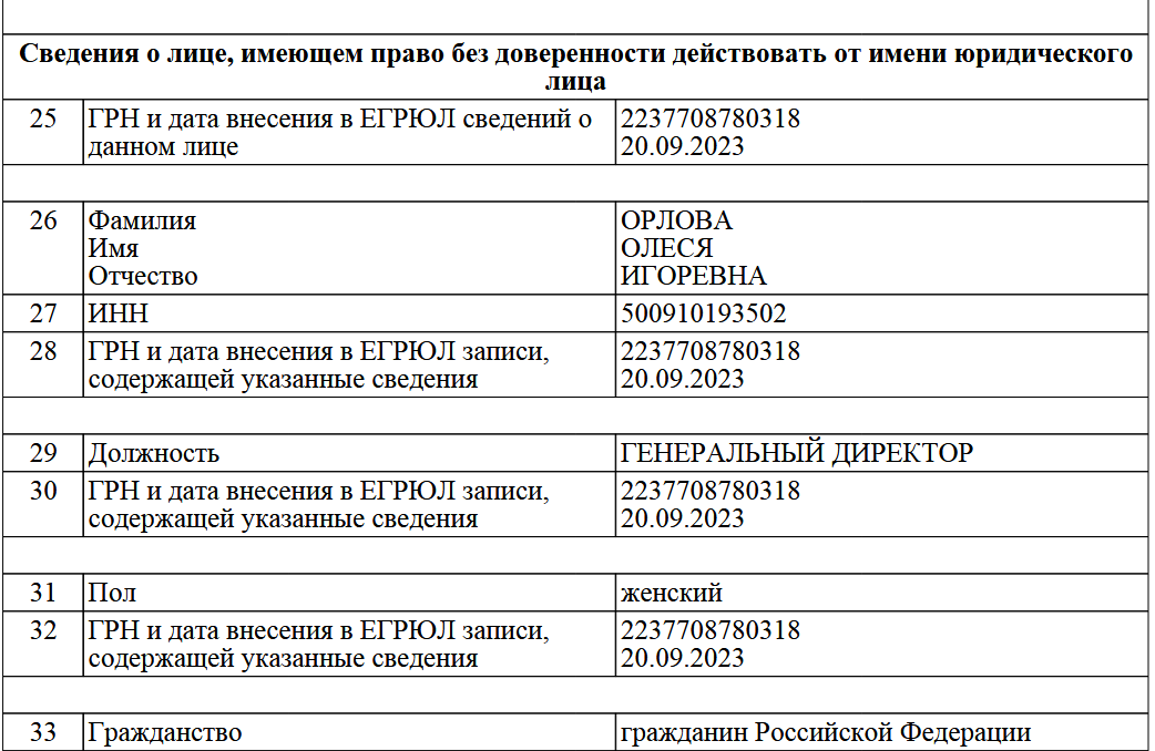 Однако, руководит школой, судя по выписке ЕГРЮЛ, не Ольга, а Орлова Олеся Игоревна.