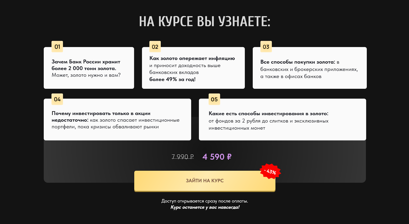 На веб-странице онлайн-школы ProFinancy указано, что приобрести гайд можно со скидкой 43% за ₽4,590.