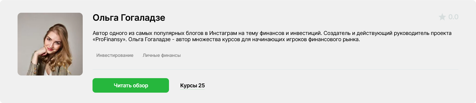 - Информация об авторе курса в интернете есть, но на сайте онлайн-школы нет доказательств. Поэтому достоверно неизвестно, есть ли у коуча финансовое образование и опыт в инвестициях.