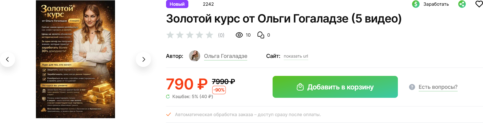Образовательный курс «Золотой курс» от Ольги Гогаладзе создан для людей, которые хотят инвестировать деньги в золото. По утверждениям коуча, делать вложения в драгоценные металлы никогда не поздно. Наставница обещает, что научит всех желающих делать это правильно и с выгодой. В этом обзоре рассмотрим содержание учебного гайда, узнаем его стоимость, также изучим отклики учеников коуча.