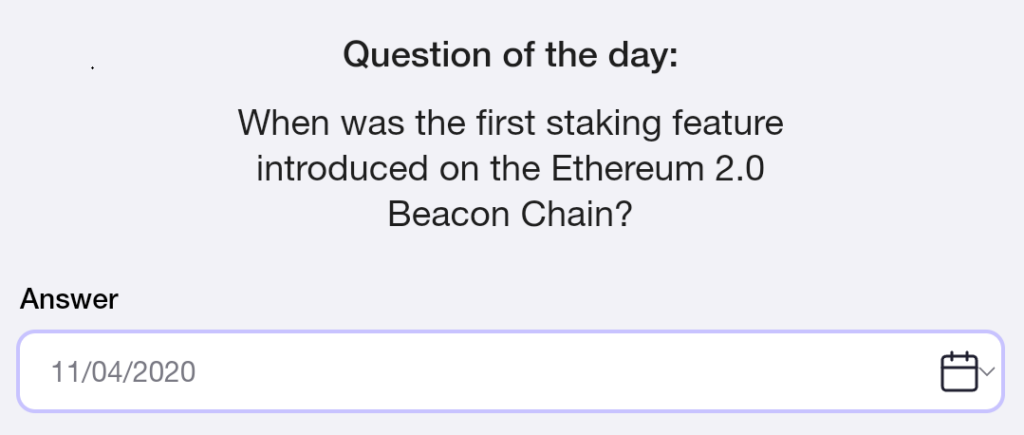 Актуальный вопрос на 30 сентября звучит так: когда была впервые введена функция стейкинга на Beacon Chain Ethereum 2.0?