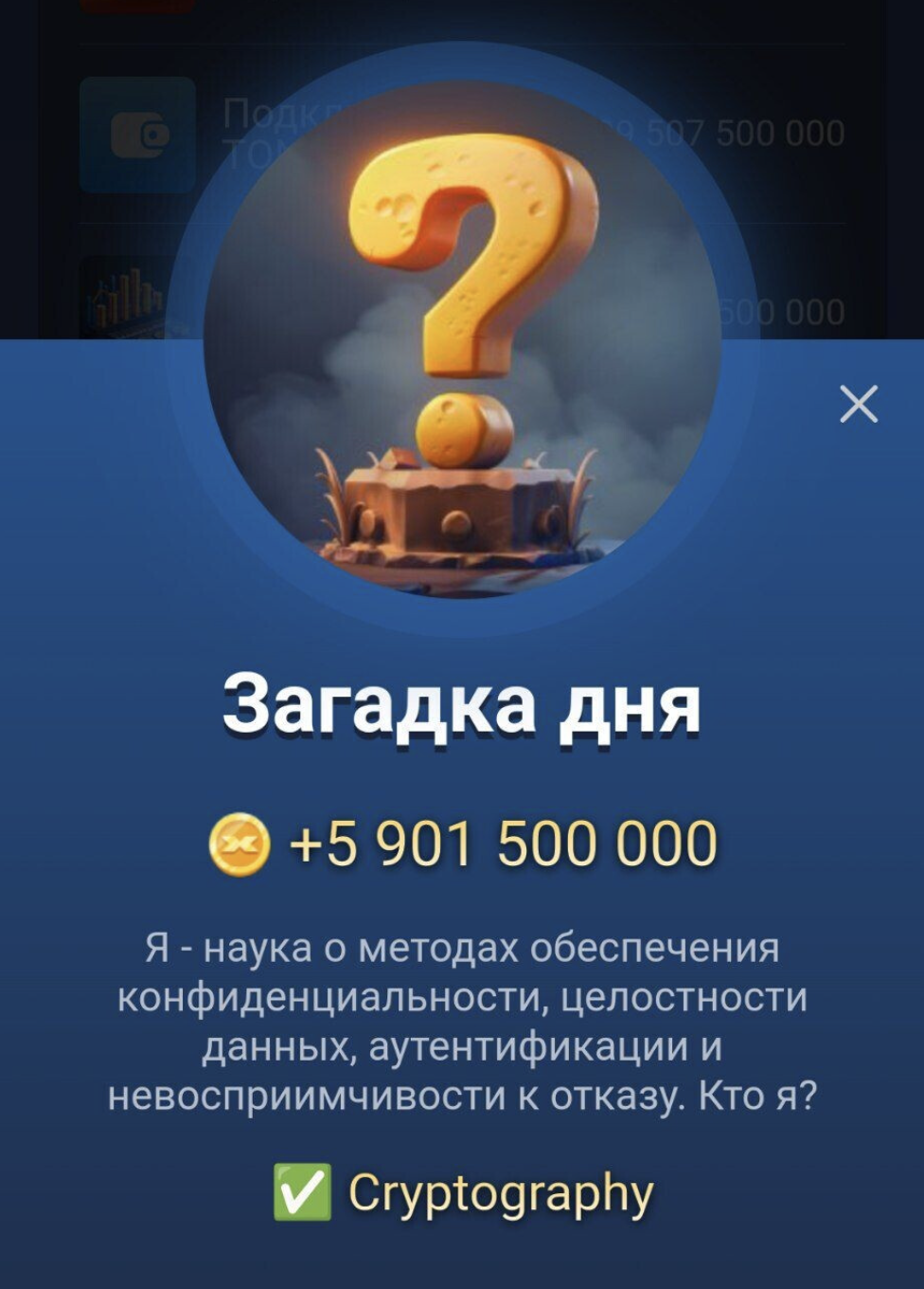 Ответ на загадку в тапалке Маск Эмпаер: Cryptography.
