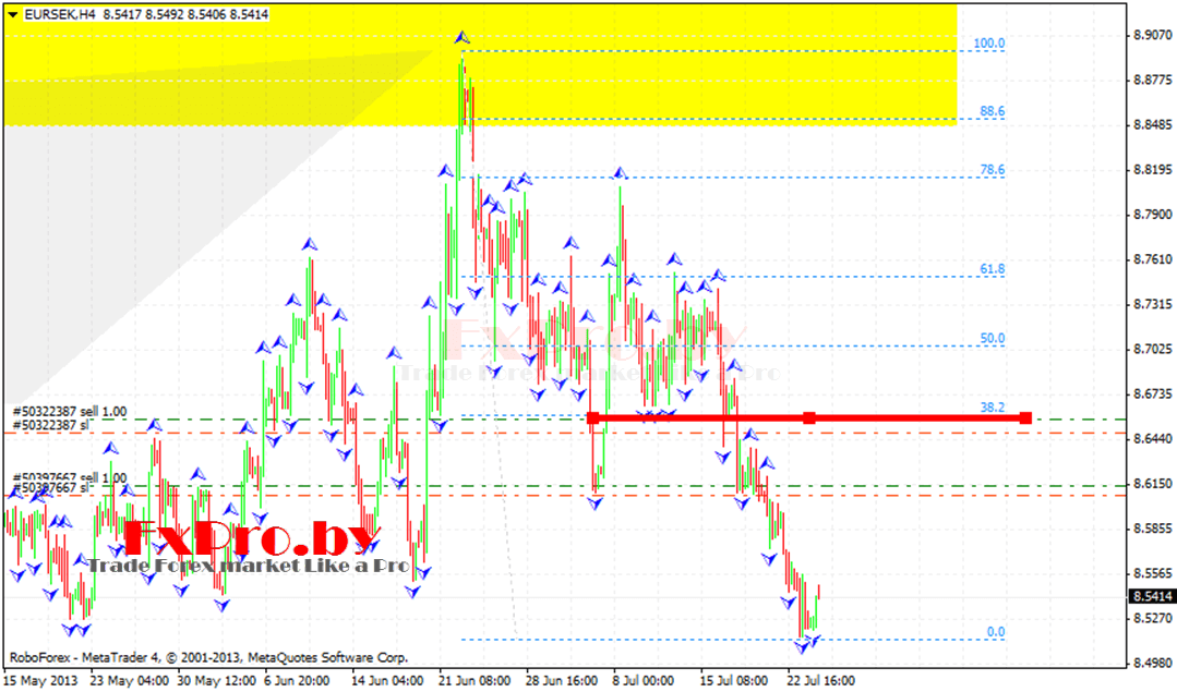 Скользящий стоп обычно применяется, когда есть движение в нужном направлении и происходит коррекция к уровню 38.2%. Этот скользящий стоп обычно используется после достижения первоначальной области прибыли. Хотя он является общим для разворота тренда, но часто повторное тестирование этого уровня становится критическим. Поэтому позиция должна быть закрыта при достижении уровня коррекции 38.2%.