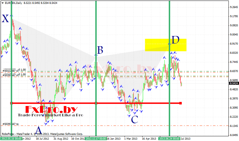 Гармоничный трейдинг сводится к идентификации моделей и определения области разворота исходя из уровней Фибоначчи. Важно помнить, что это все лишь потенциальная область разворота и явное пробитие этой области приводит к отмене модели. Так стоит запомнить, что более качественные модели будут формироваться в направлении общего тренда.