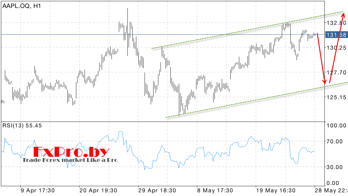 «Пример модели акула также есть и на фондовом рынке. На часовом графике акций жпл формируется модель акула, с текущих уровней стоит ожидать начала падения. Таким образом, у нас есть готовый пример модели медвежья акула на apple.»