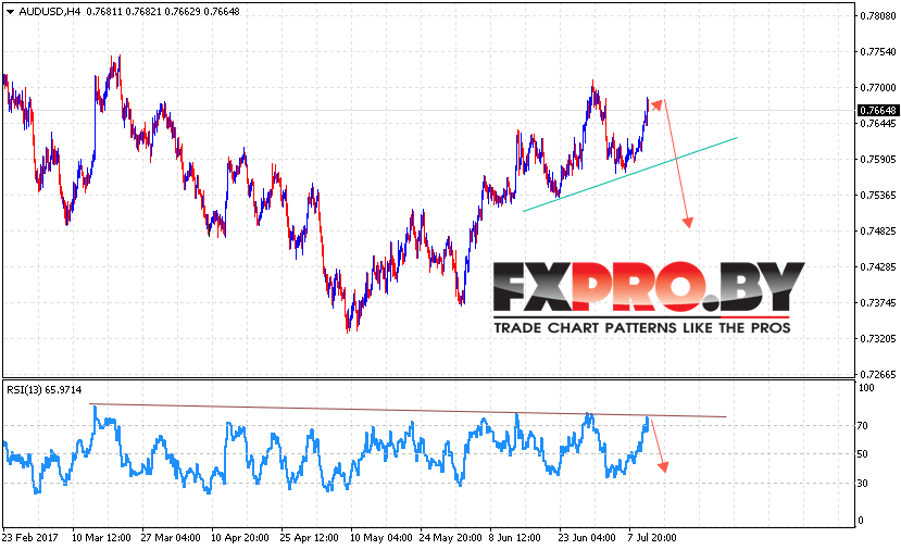 Таким образом, AUD/USD прогноз Австралийского Доллара на 13 июля 2017 предполагает попытку снижения в область ниже уровня 0.7480 в рамках начала отработки разворотной модели Голова и плечи, отменой станет пробой уровня локального максимума, в этом случае стоит ожидать продолжения роста.