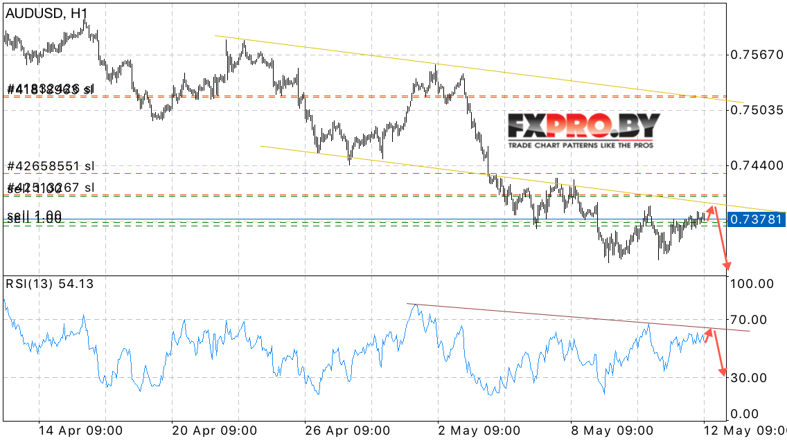 Валютная пара Австралийский Доллар к Доллару США AUD/USD продолжает движение вблизи пробитой границы нисходящего канала и на данный момент сохраняется потенциал для падения котировок в область ниже уровня 0.73.