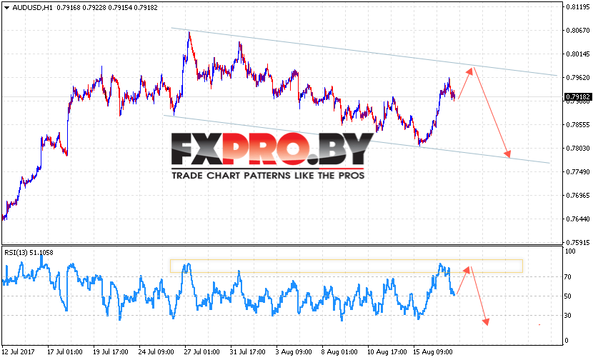 Таким образом, AUD/USD прогноз Австралийского Доллара на 18.08.2017 предполагает попытку теста уровня 0.7950 и продолжения снижения в область ниже 0.78, в рамках начала отработки медвежьей модели 5-0.