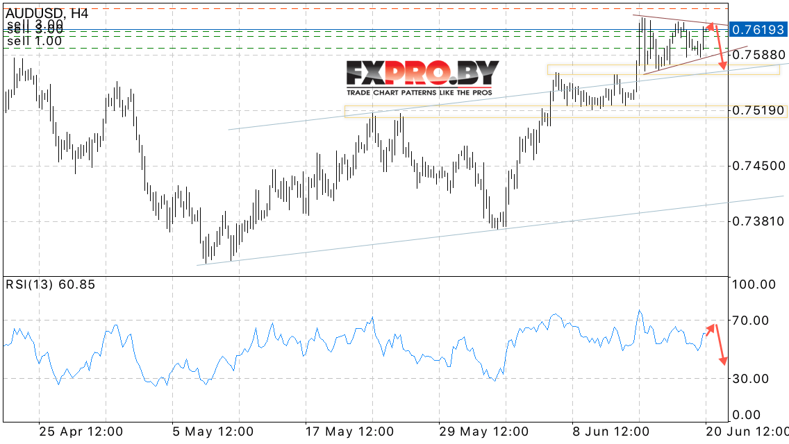 Валютная пара Австралийский Доллар к Доллару США AUD/USD продолжает движение в вблизи области 0.7620. На данный момент сохранятся потенциал для падения котировок пары в область ниже уровня 0.7550.