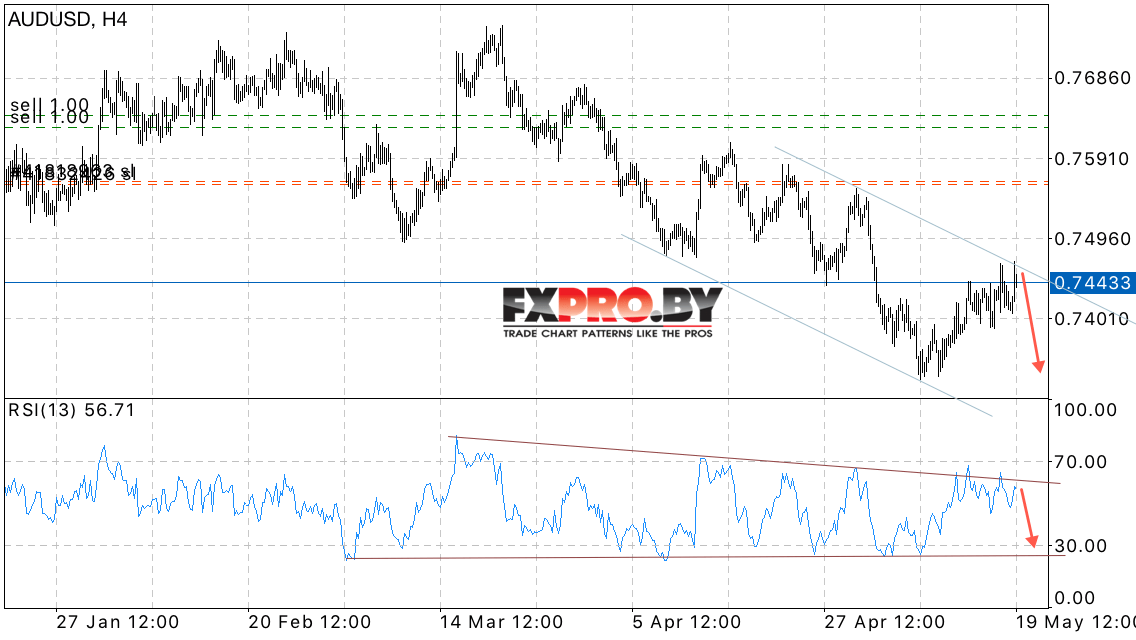 Валютная пара Австралийский Доллар к Доллару США AUD/USD продолжает движение в рамках нисходящего канала. Сохраняется потенциал для отскока от верхней границы и продолжения снижения пары в область ниже уровня 0.73.