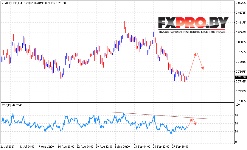 Таким образом, AUD/USD прогноз Форекс и аналитика на 4 октября 2017 предполагает попытку роста в область 0.7950, дополнительным сигналом в пользу роста выступает формирование разворотной модели на индикаторе относительной силы, отменой варианта станет пробой уровня 0.7765.