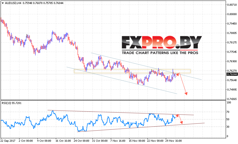 Таким образом, AUD/USD прогноз Форекс и аналитика на 5 декабря 2017 предполагает попытку теста верхней границы канала вблизи области 0.7605, откуда стоит ожидать продолжения падения AUD/USD с целью ниже уровня 0.7460, дополнительным сигналом в пользу снижения выступит тест линии сопротивления на индикаторе относительной силы, отменой варианта падения AUD/USD станет пробой уровня 0.7655.