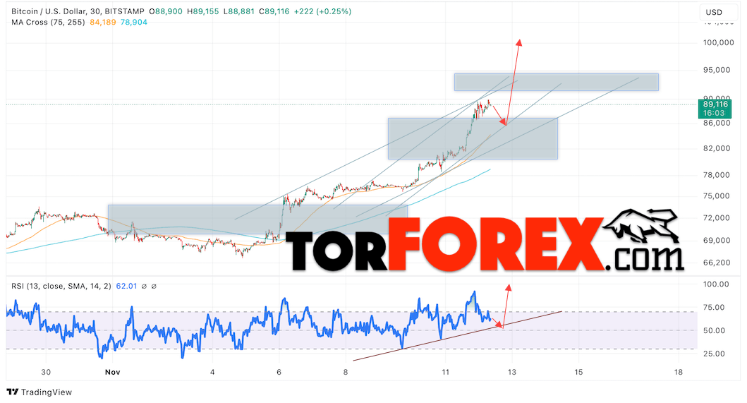 BTC/USD прогноз курса Биткоина на 13 ноября 2024