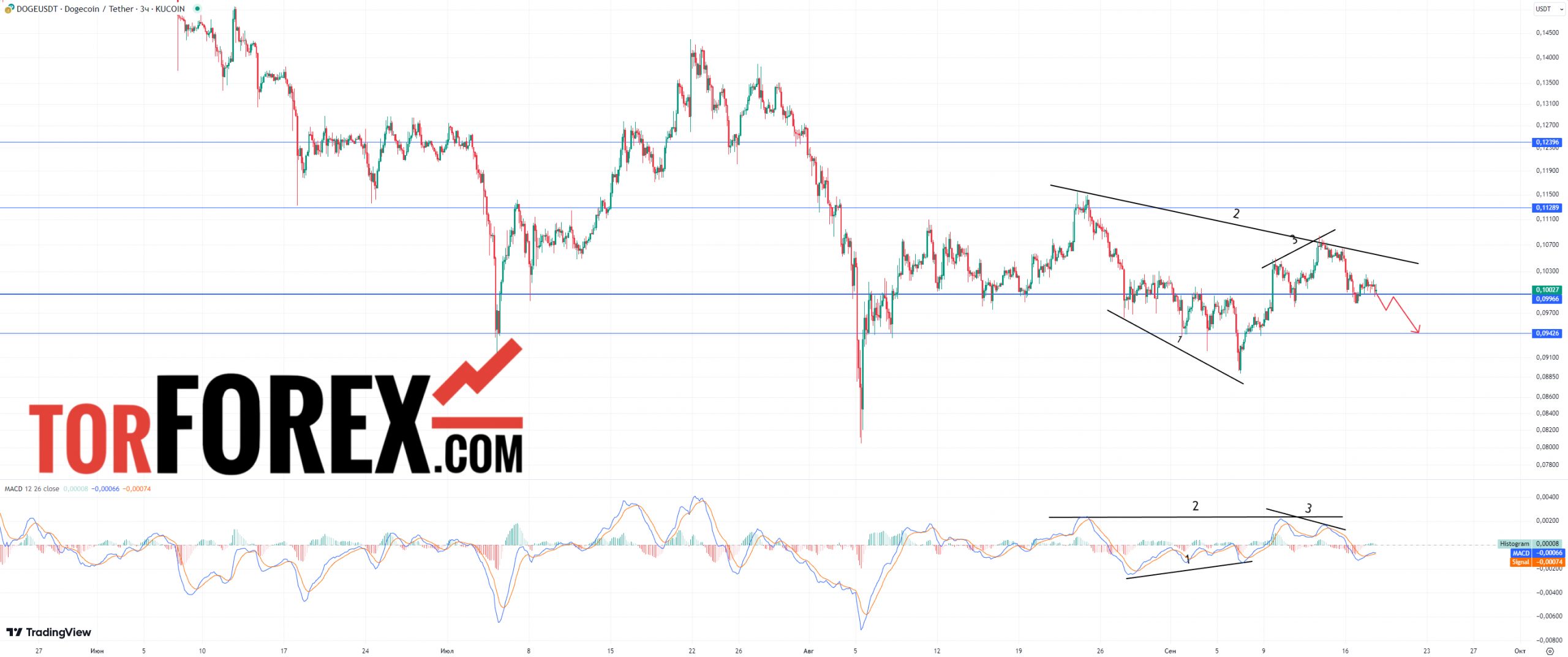 Уровень, предположительно к которому может снизится цена — ближайший уровень поддержки в районе 0.09426.