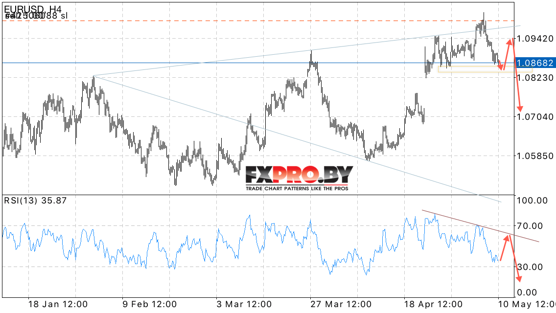 Таким образом, EUR/USD прогноз Евро Доллар на 11 мая 2017 предполагает попытку коррекции пары в область выше уровня 1.0940, где стоит ожидать завершения формирования разворотной модели Голова и плечи, что укажет на продолжение падения котировок пары евро доллар на Форекс.