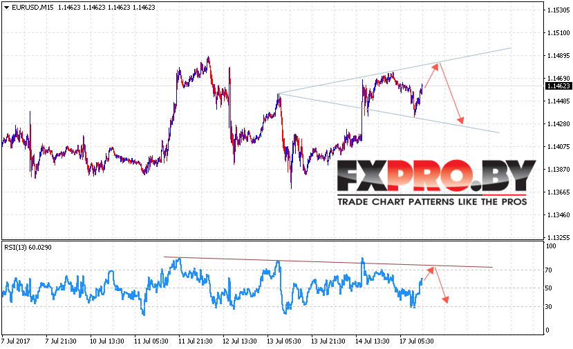 Таким образом, EUR/USD прогноз Евро Доллар на 18 июля 2017 предполагает попытку падения теста ровня 1.1480 и начала падения в рамках отработки медвежьей модели волны Вульфа с целью вблизи уровня 1.1430.